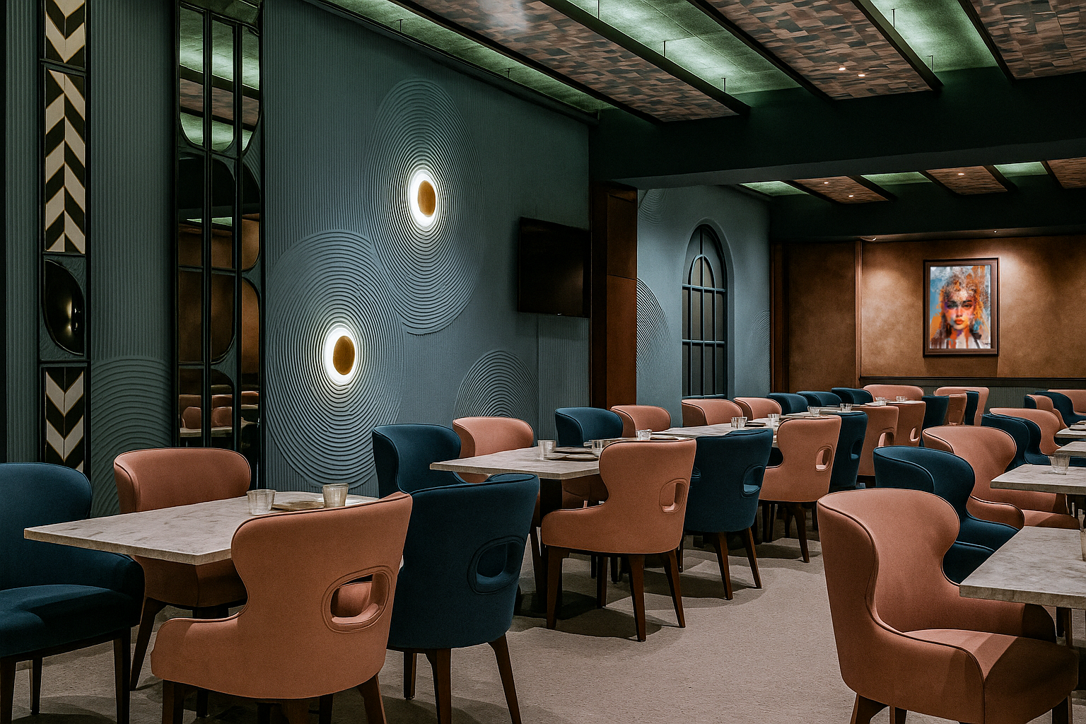 A fine dining destination defined by refined design and curated detail. The space combines contemporary geometry with a warm, immersive ambiance. Every element is crafted to elevate the dining experience into a work of art.
