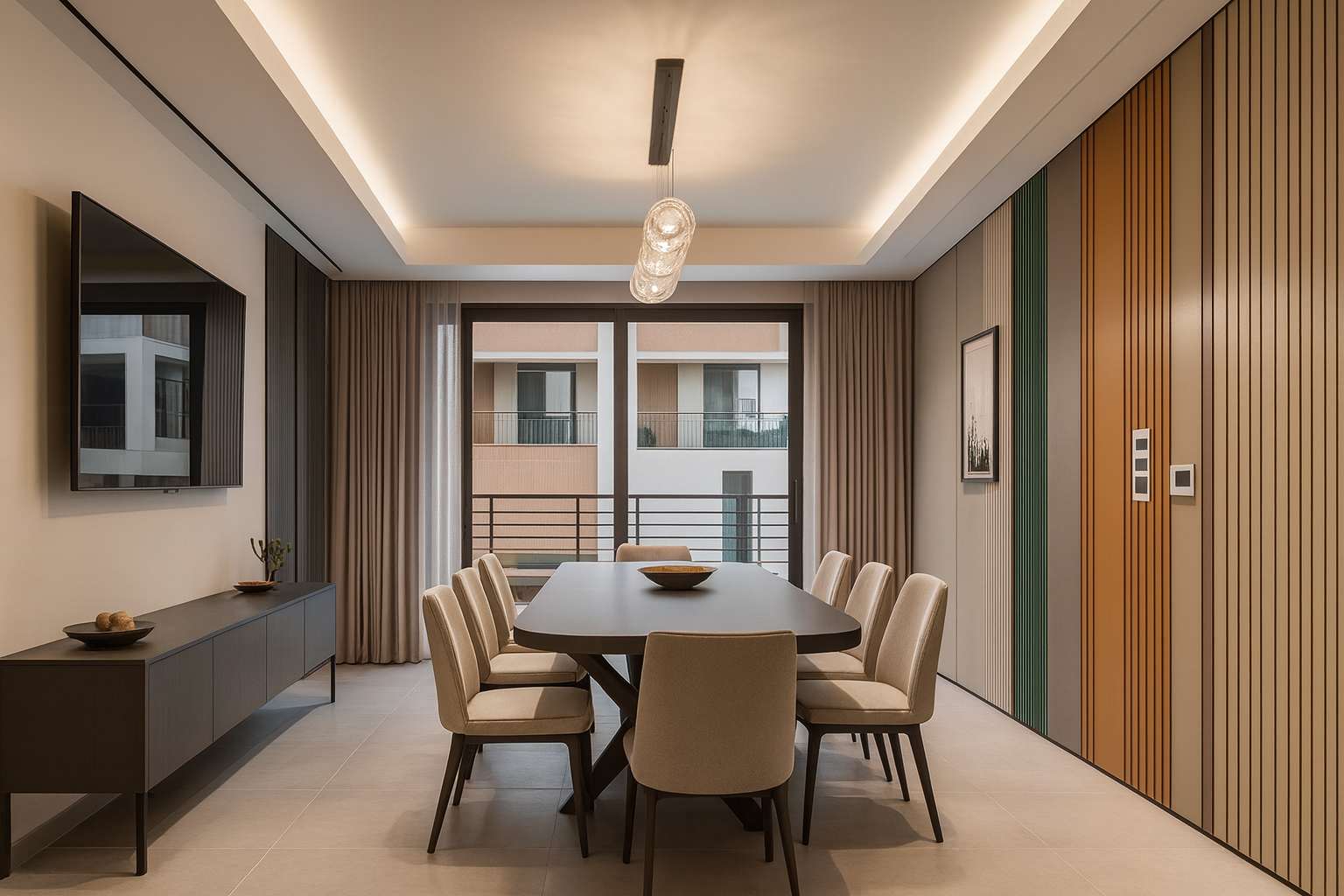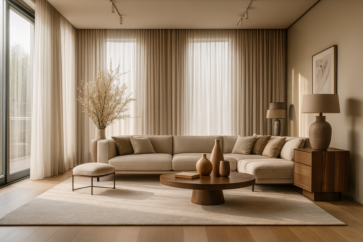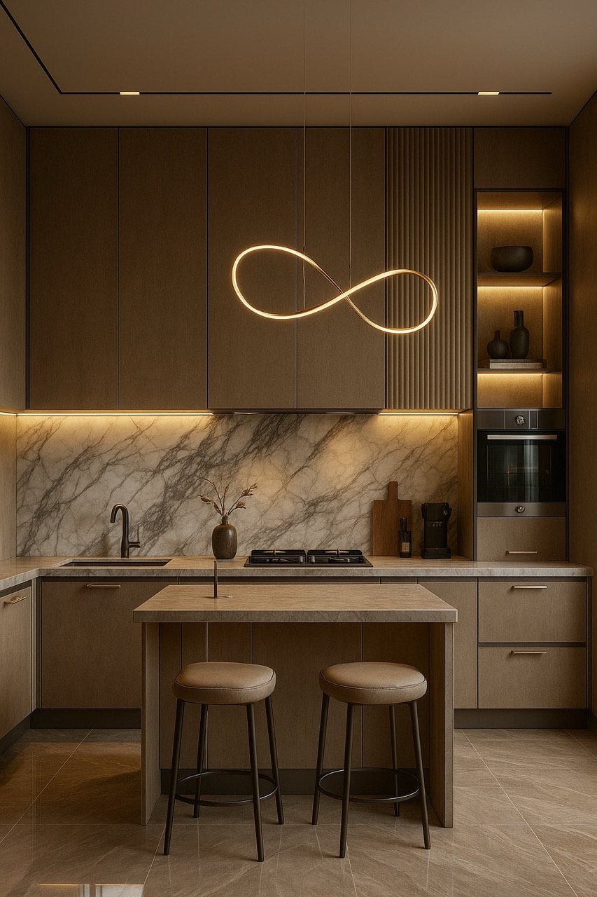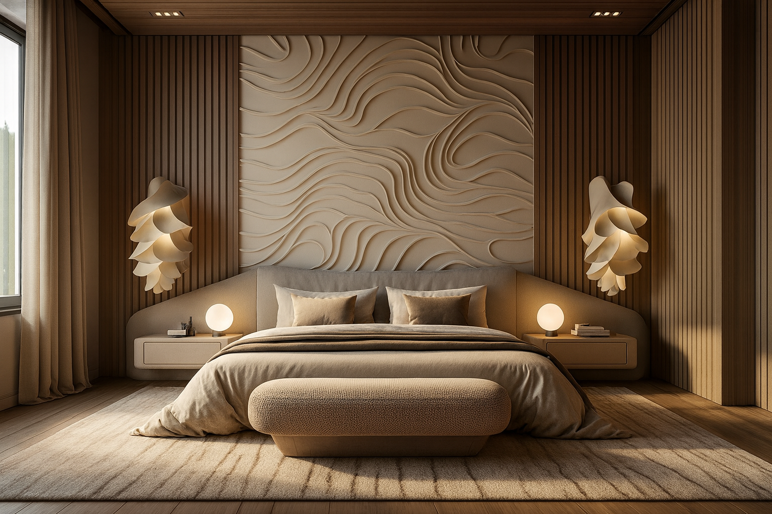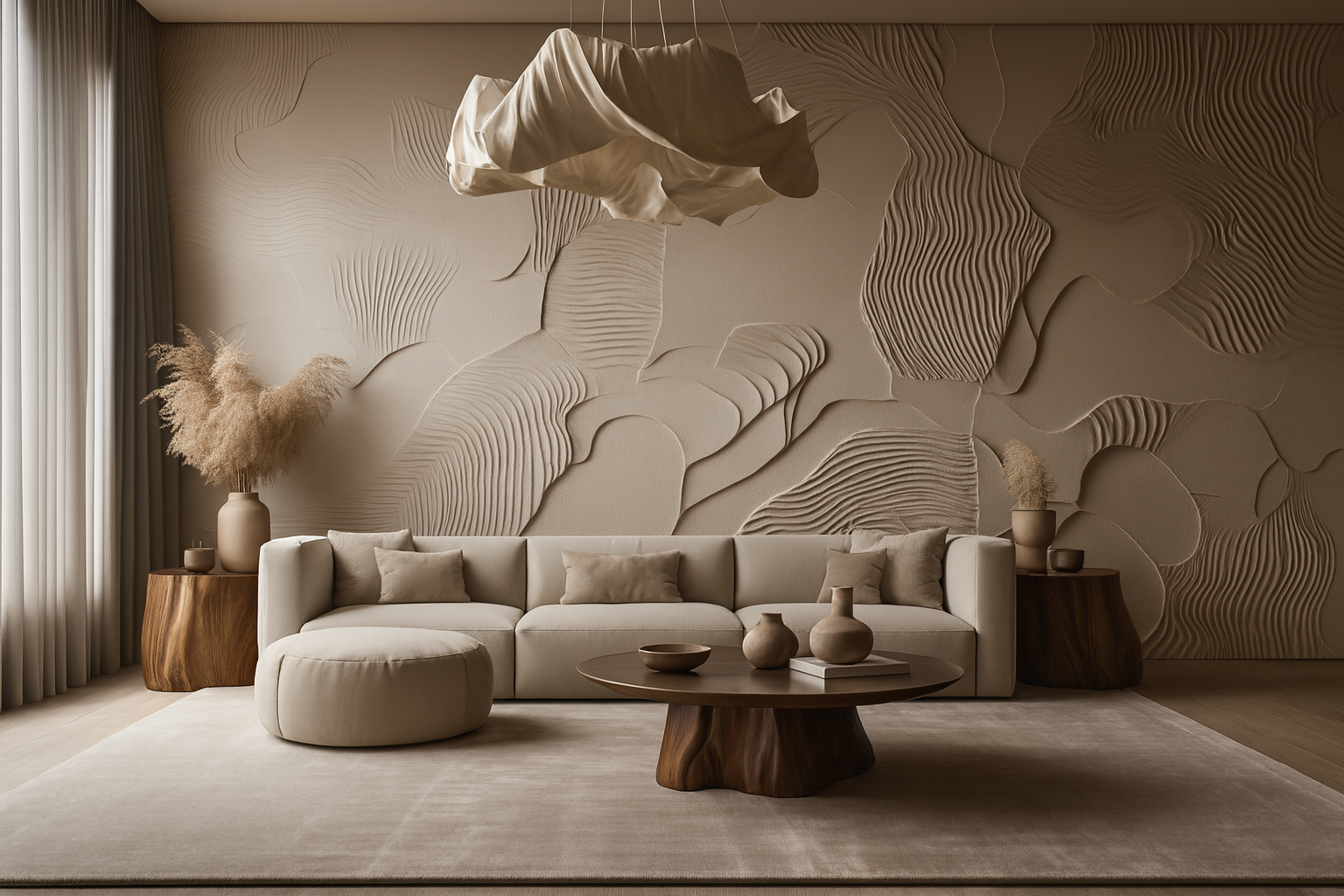 A residence shaped by soft textures and sculptural detailing. Muted tones and layered finishes flow across spaces to create harmony and depth. Calm, cohesive, and timeless, it embodies quiet luxury in every corner.