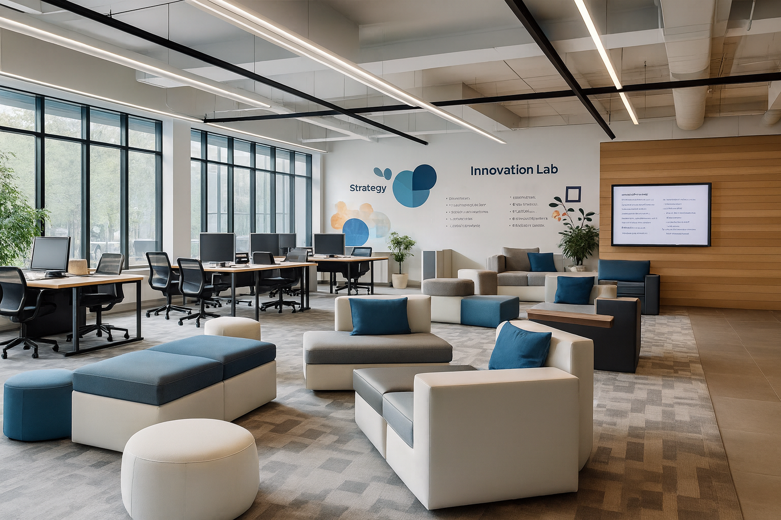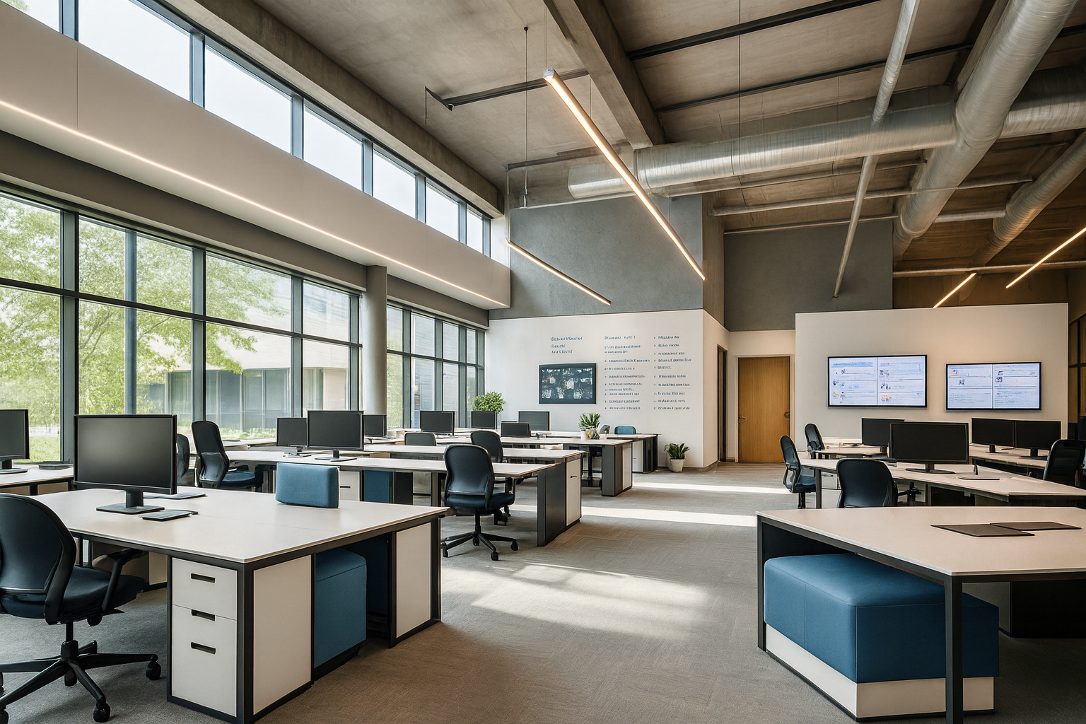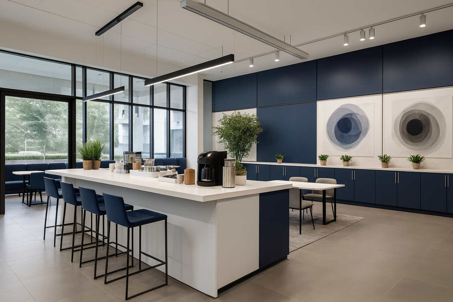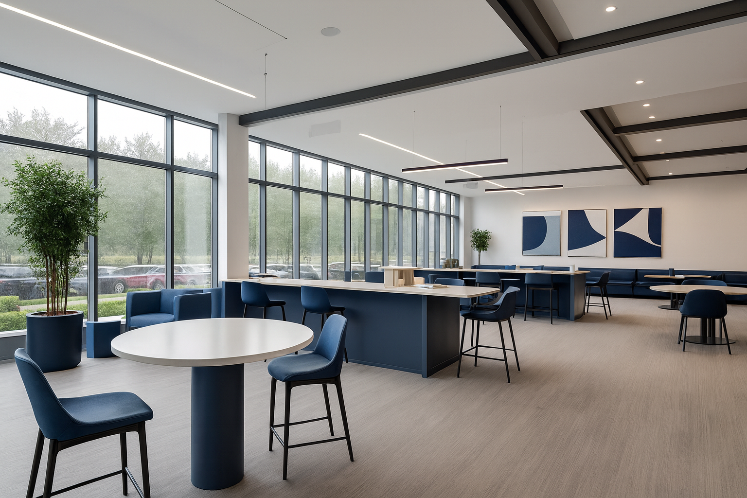 A corporate workspace defined by precision and rhythm. Open layouts and collaborative nodes establish a dynamic flow across the floor plate. Natural light and refined detailing ground the environment in focus and innovation.