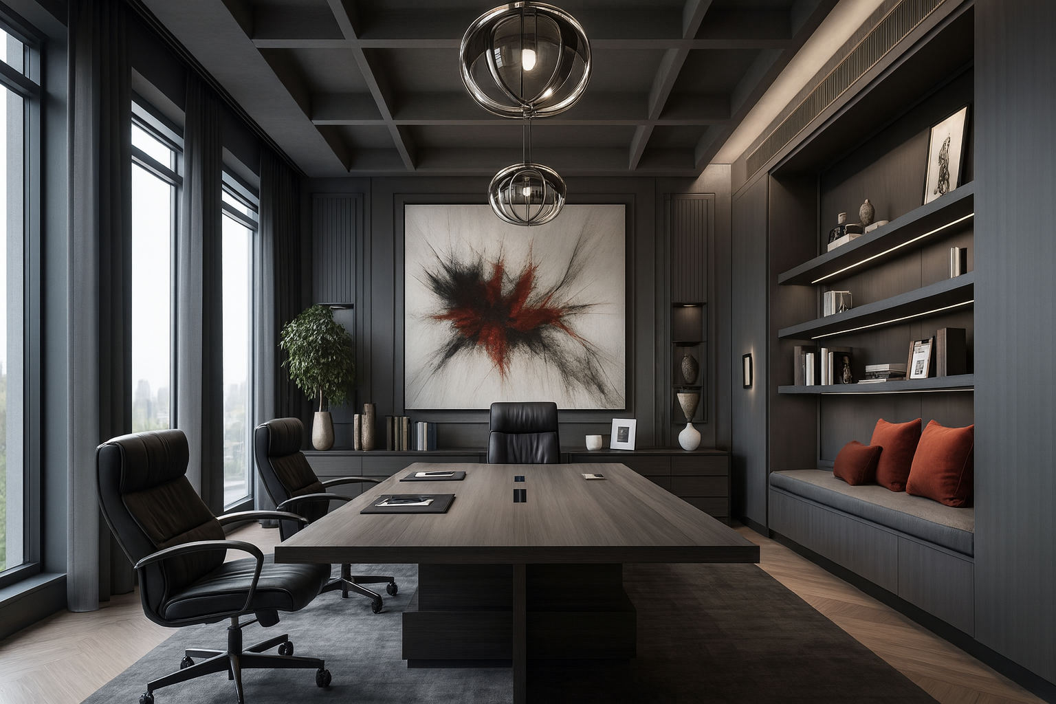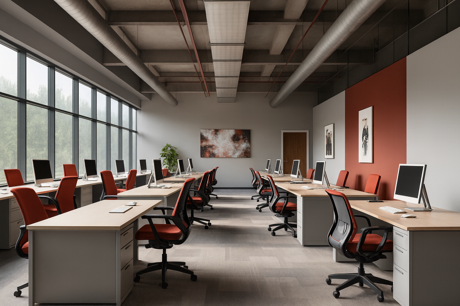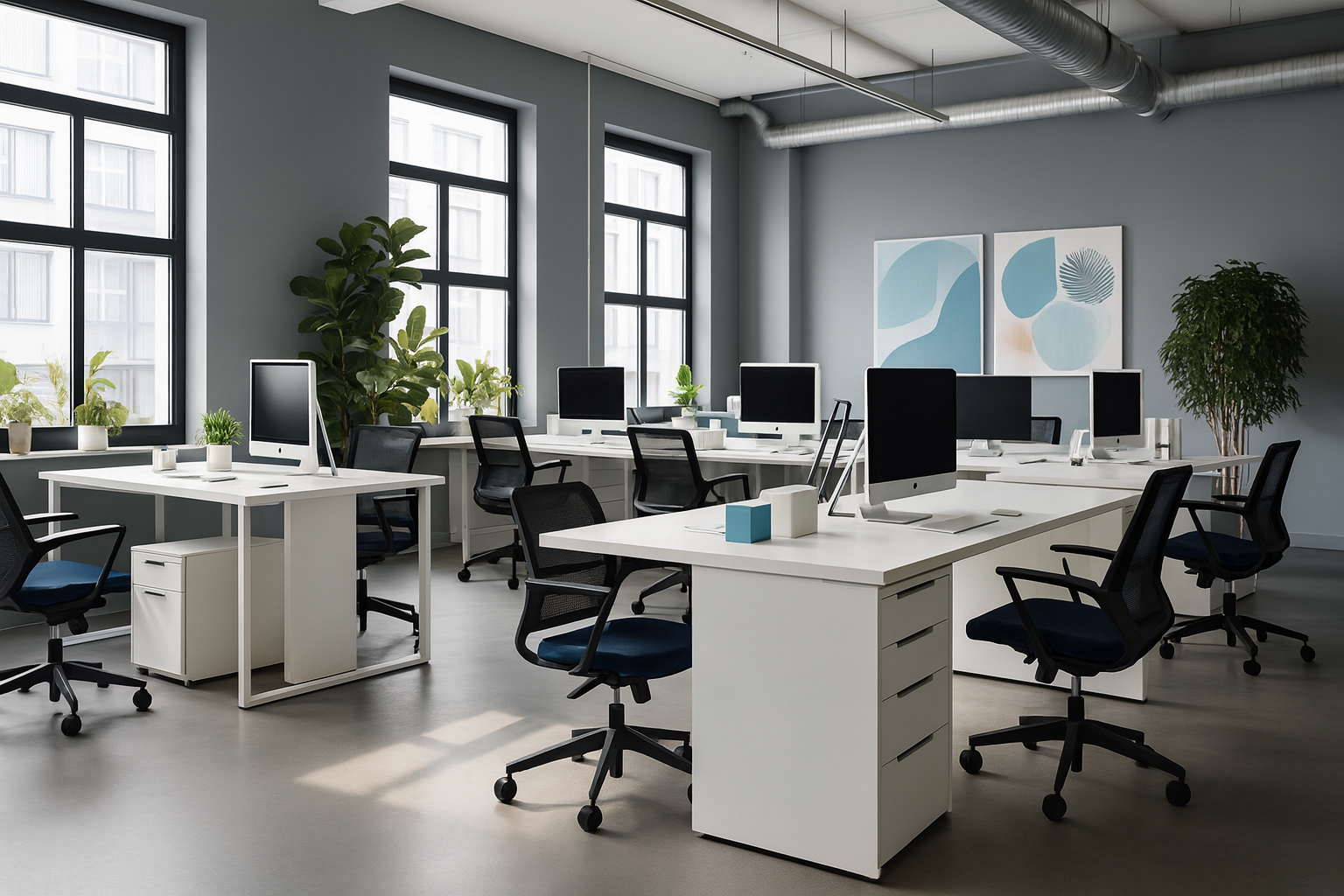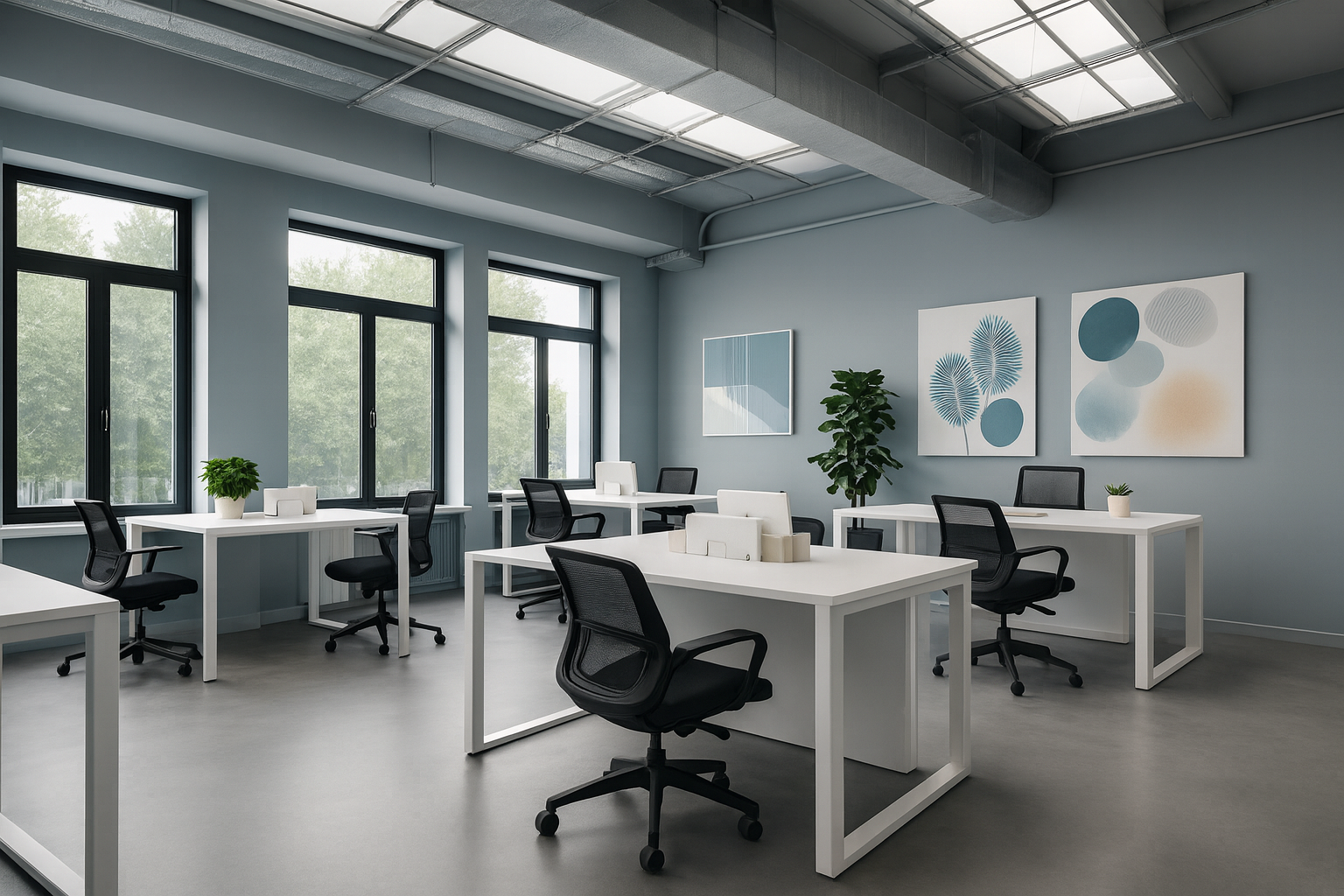 A corporate workspace defined by precision and rhythm. Open layouts and collaborative nodes establish a dynamic flow across the floor plate. Natural light and refined detailing ground the environment in focus and innovation.