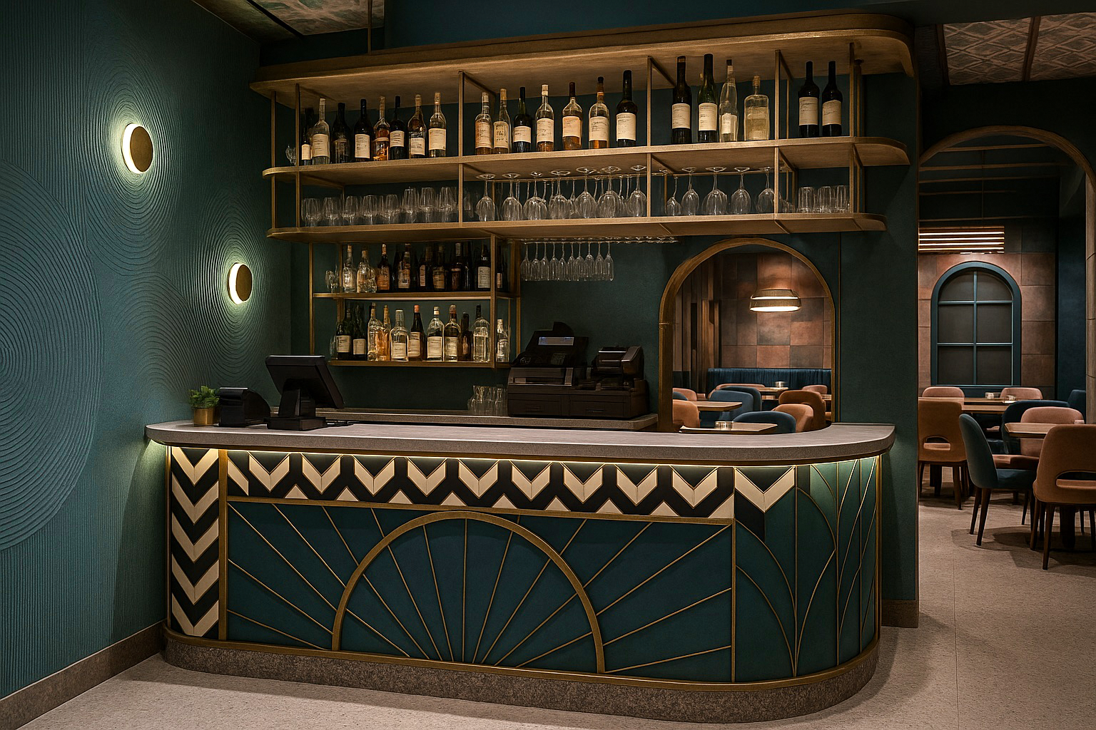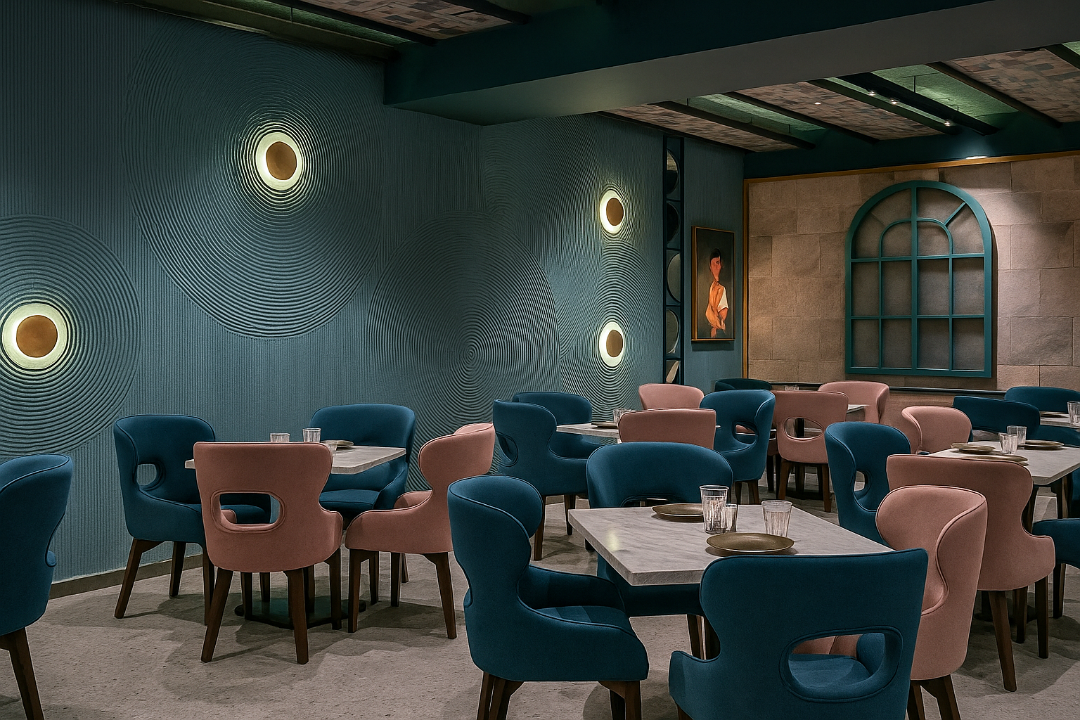 A fine dining destination defined by refined design and curated detail. The space combines contemporary geometry with a warm, immersive ambiance. Every element is crafted to elevate the dining experience into a work of art.